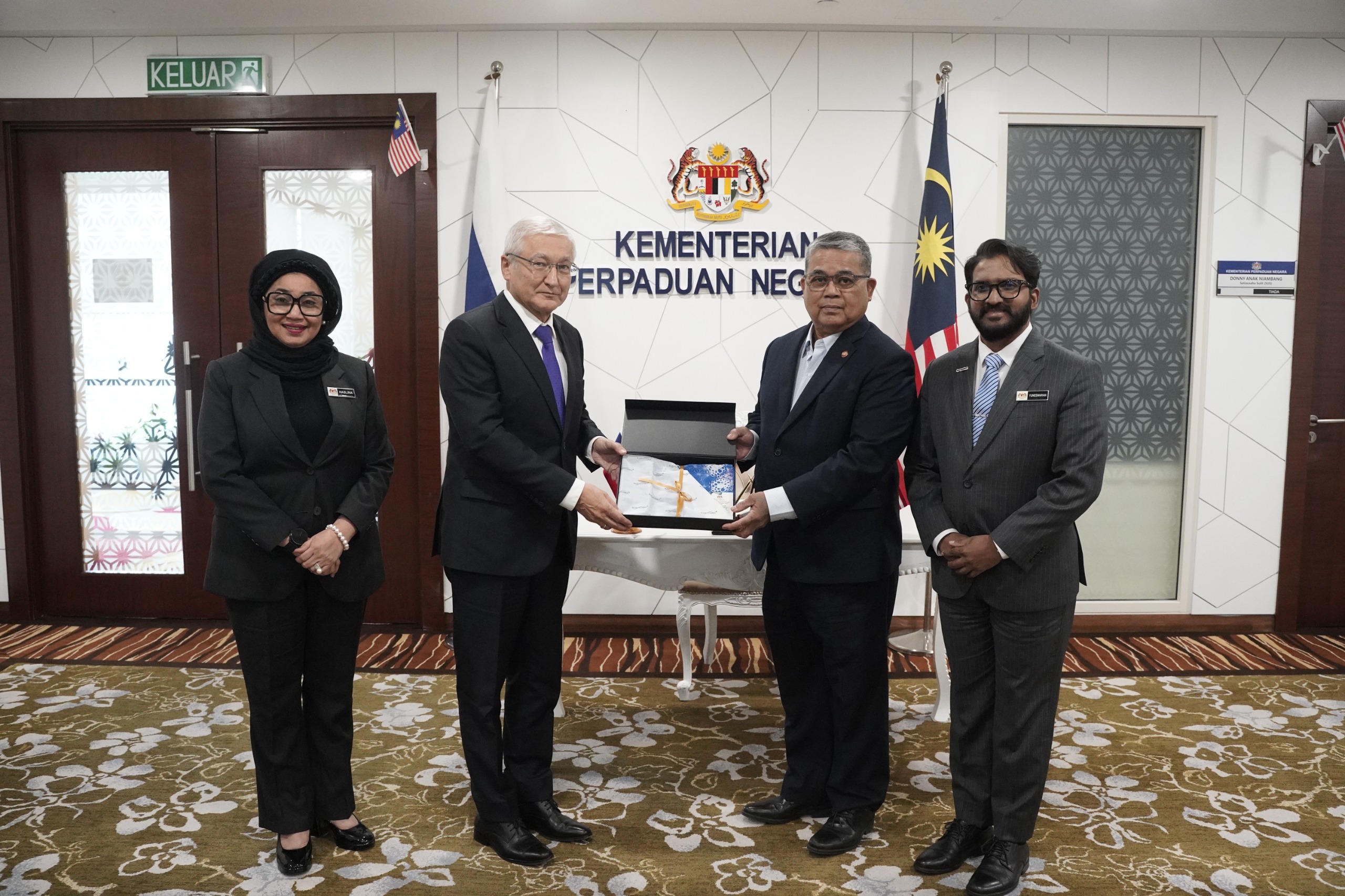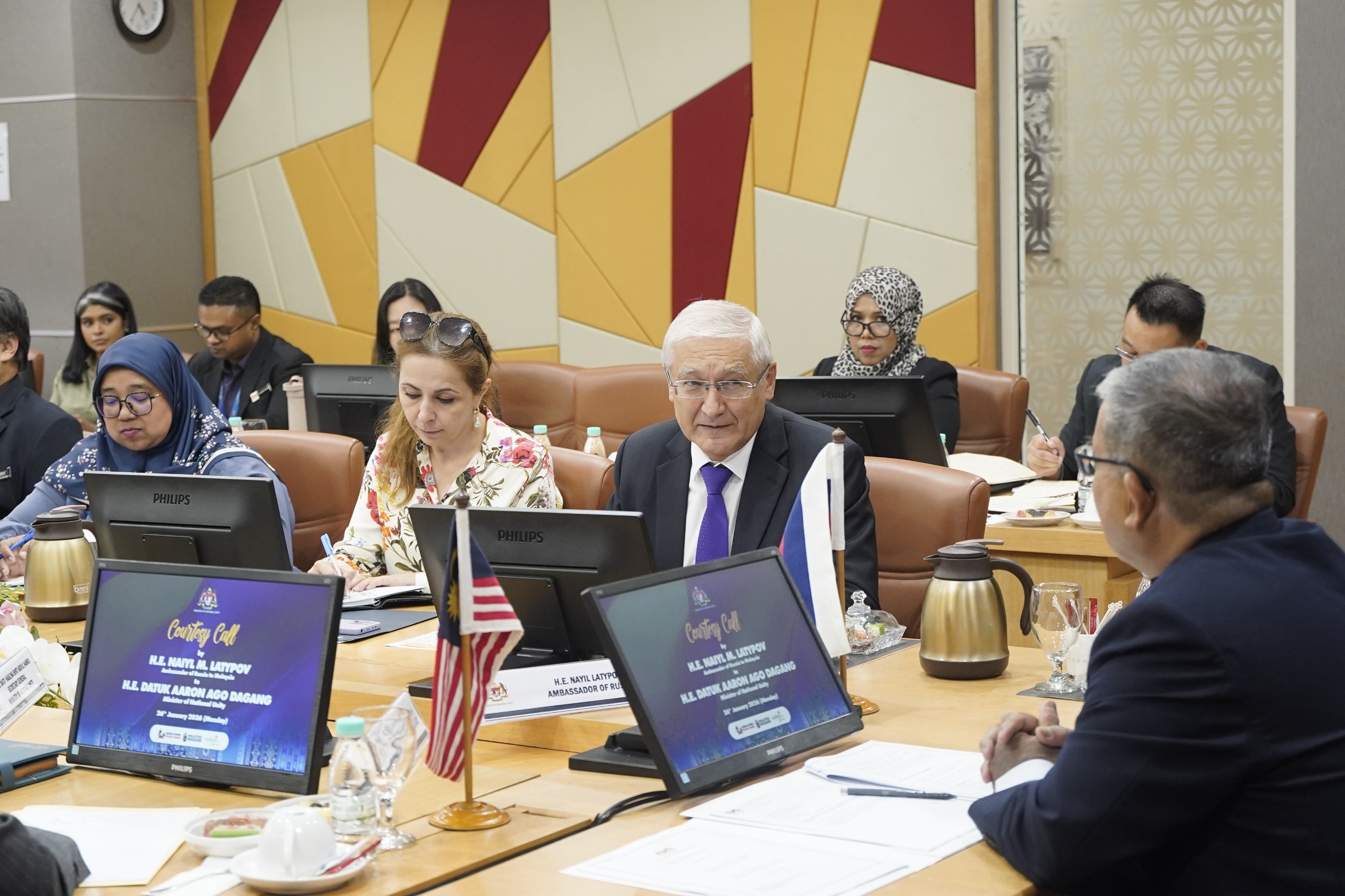 26 Januari 2026, Putrajaya - YB Datuk Aaron Ago Dagang, Menteri Perpaduan Negara telah menerima kunjungan hormat daripada Tuan Yang Terutama Naiyl M. Latypov, Duta Besar Persekutuan Rusia ke Malaysia.