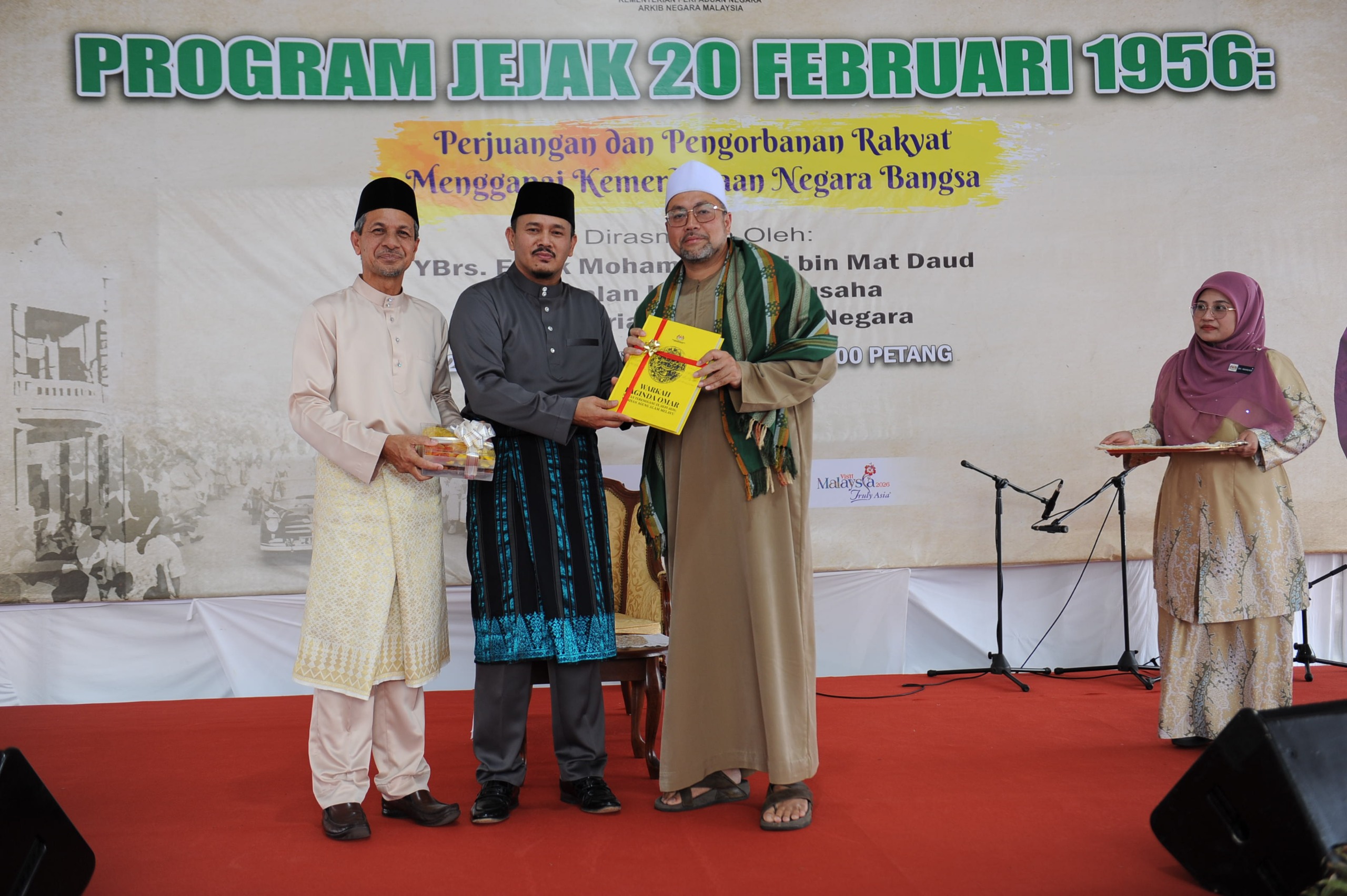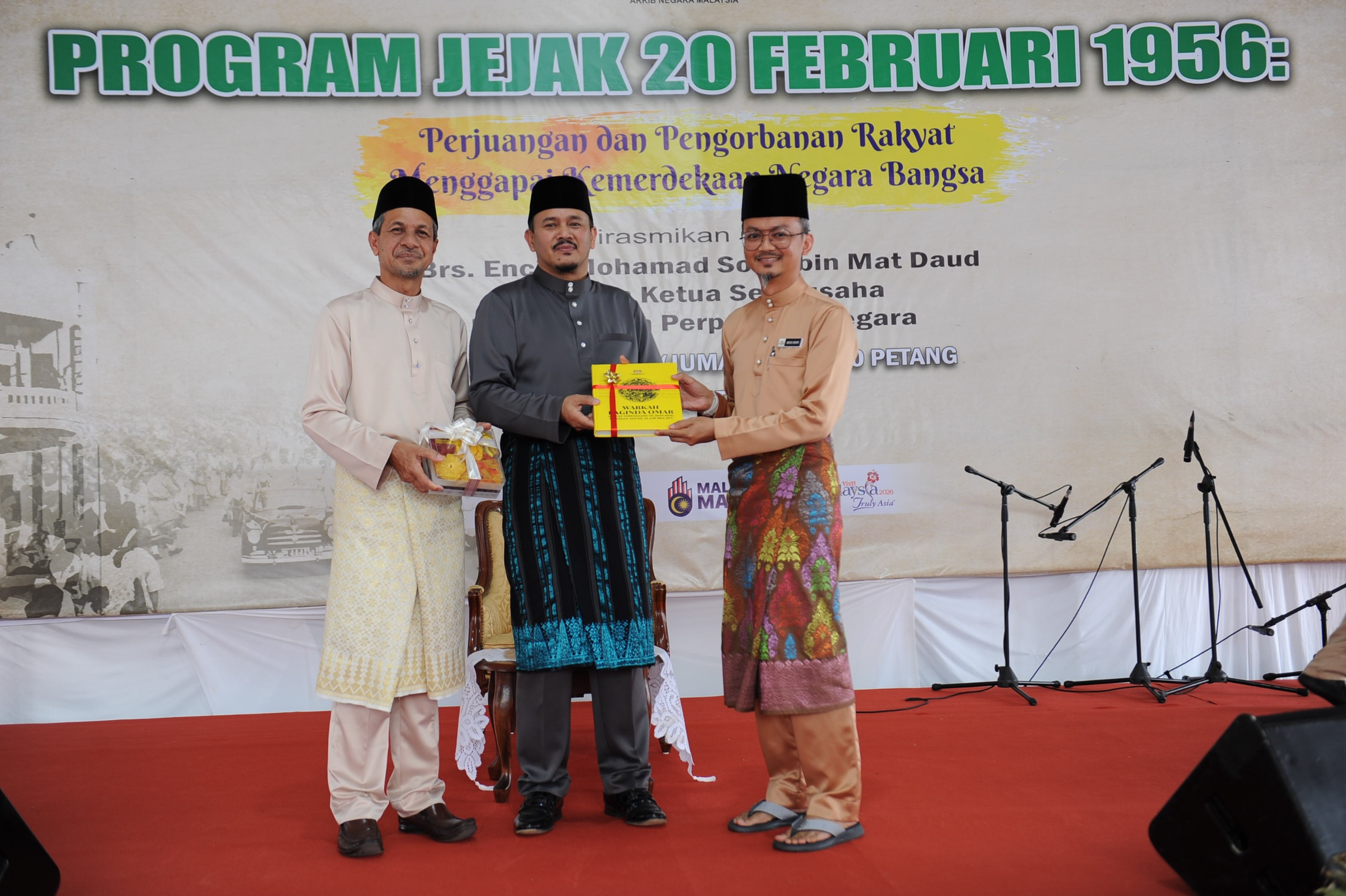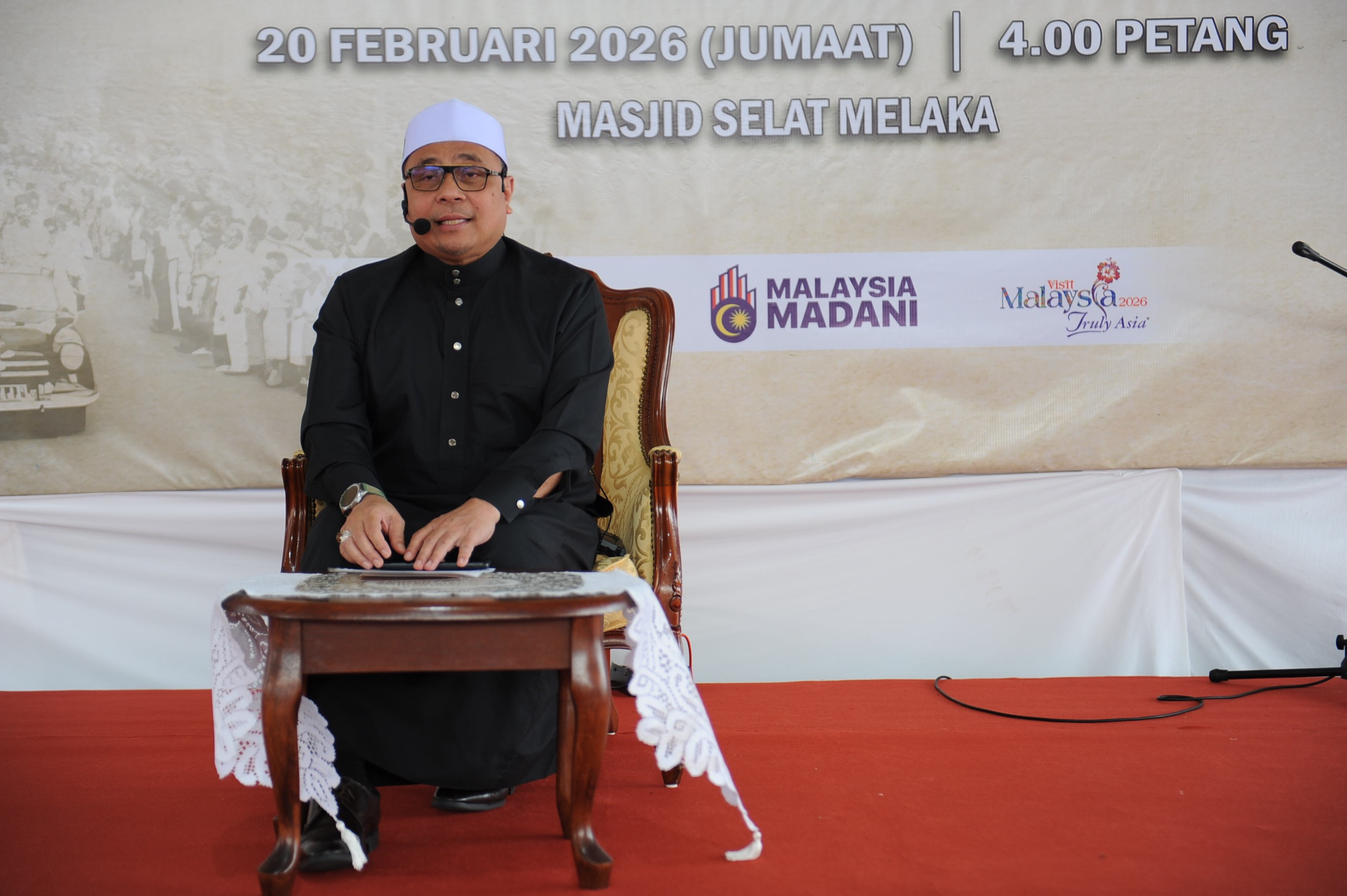 20 Februari 2026, Melaka - Perpaduan tidak boleh dibina tanpa kefahaman sejarah, dan sejarah tidak akan bermakna tanpa diterjemahkan ke dalam nilai dan amalan kehidupan seharian rakyat. Perkara tersebut dinyatakan oleh YBrs. Tuan Mohamad Sobri Mat Daud, Timbalan Ketua Setiausaha (Dasar dan Perancangan Strategik) Kementerian Perpaduan Negara semasa menyempurnakan program Jejak 20 Februari 1956: Perjuangan dan Pengorbanan Rakyat Menggapai Kemerdekaan Negara Bangsa anjuran Arkib Negara Malaysia dengan kerjasama pengurusan Masjid Selat Melaka.